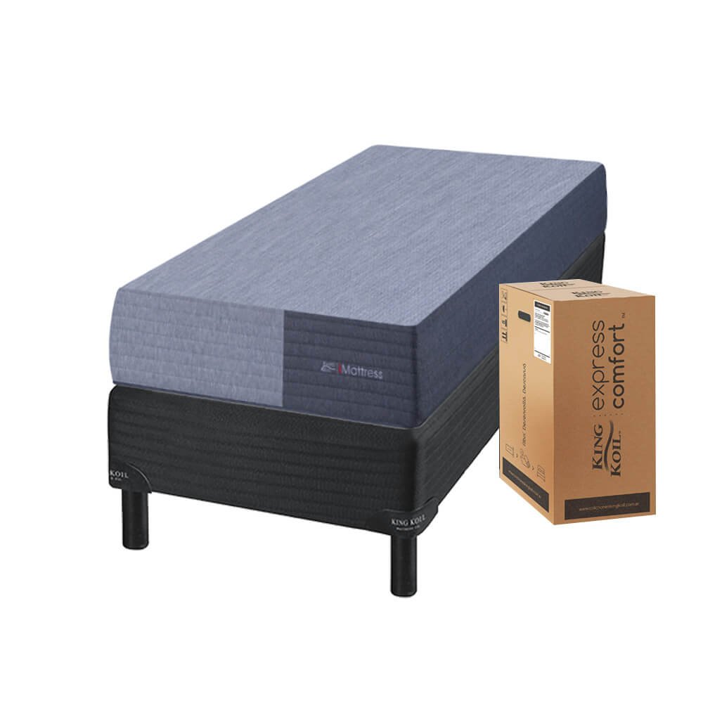 Colchón y Sommier en caja 1 Plaza (80x190x24) King Koil Express Visco Espuma